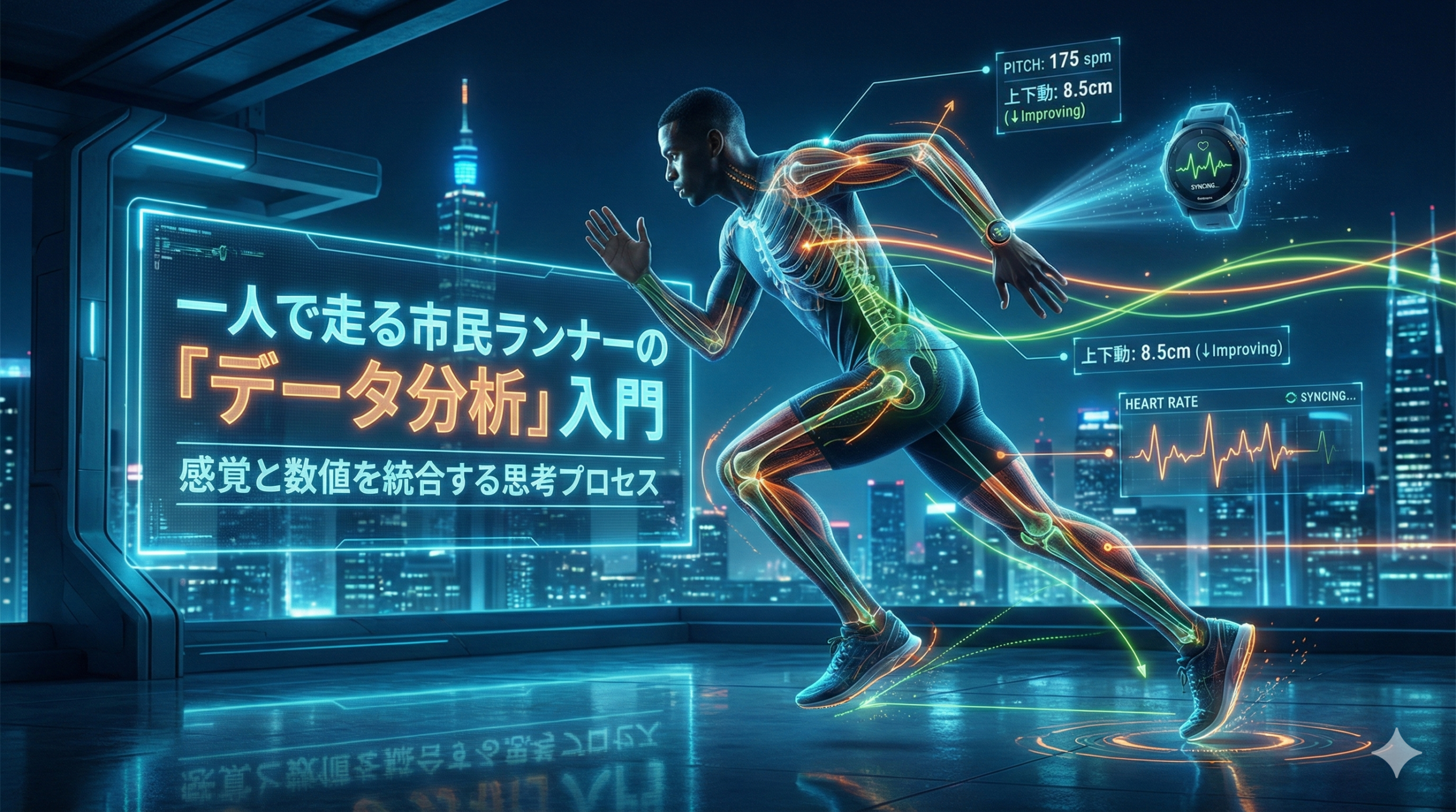データファースト。ケイデンス、ピッチ、上下動がいくつになっているか——そこから逆算して、自分はどういうふうに体を動かしたらいいのか。感覚を合わせていく。